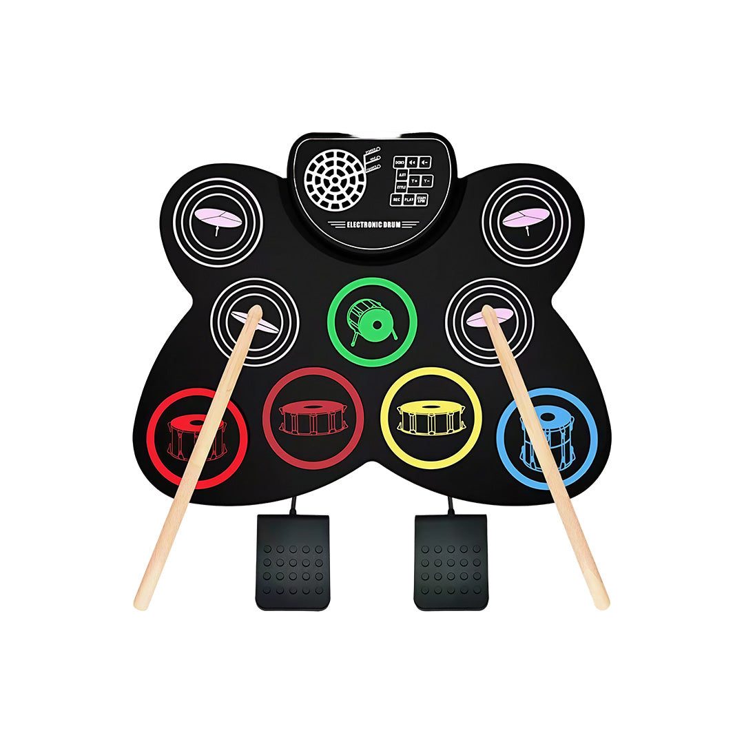 Bring pro-style drumming anywhere — no bulky hardware required. The RIXTON 9-Pad Portable Electronic Drum Set is a roll-up drum kit engineered for portability, practice and playful creation. Ideal for kids (3+), beginners and traveling musicians, this compact kit delivers realistic drum tones, crisp stereo sound and helpful learning features in an easy-to-store design.